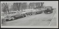 Item 177: Probably Lawrence Post Office - Christmas 1954. Item 178: Probably Salvation army bell ringer in Lawrence in 1954. Item 179: Probably chain reaction accident at top of 14th street. Item 180: Nebraska vs ? - 1954 Big Seven Tournament KC. Item 181: Nebraska vs ? - 1954 Big Seven Tournament KC.