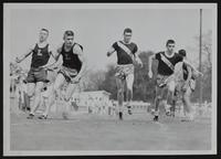 Item 370: Drake Relays - (L to R) Wes Santee; Angie Branch, Relays queen from U of Huston; Fred Dwyer. Item 371: Pulled to University Archives. Item 372: Drake Relays - Billy Tidwell of Emporia state. Item 373: Drake Relays - Jim Golliday of Northwestern (second from right) and Dick Blair (right). Item 374: Pulled to University Archives. Item 375: Drake Relays - Bill Nieder. Item 376: Tony Cordaro, of Des Moines Register-Tribune. Item 377: Probably drake Relays- Wes Santee (left) and Art Dalzell after mile run. Item 378: LHS Track Baker Relays Don Achers (Left) and Gaylen Cawley. Others not identified.