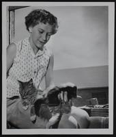Item 507: Mr. & Mrs. Jon Charles Greaves - Joyce Lavonne Long. Item 508: Mrs. Marilyn Hogan - cold weather. Item 509: Charles Malone. Item 510: Puppies of Kaiana and Anadyr, Alaskan Husky owned by Mr. and Mrs. Dick Docking. Item 511: Girl Staters (L to R) Lottie Caldwell; Judie Allen; Sandra Harding; Betty Beedles. Item 512: Shirley Rolin with cat and adopted skunk. Item 513: Probably Sheriff Billy Hodson (in car) during search in Douglas County for Richard Frank Cox.