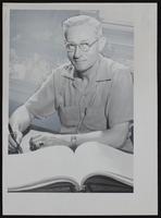 Item 721: Kansas Turnpike construction scene north of Lawrence. Item 722: Auto Accident - D. A. Miller car after sideswipe by truck - 3/4th mile south of 23rd and Iowa. Item 723: Harold Fisher, Lawrence City Clerk. Item 724: Pulled to University Archives. Item 725: LCC and KC Junior golfers are guests (L to R), Wayne Pence, Blue Hills; Mike Phillips, Santa Fe; Tommy Black; Christ Whitenight; and Charles Cornwell. Item 726: LCC - Junior Golfers (L to R) Bob Driscoll; McGuire; John Wooden; Arnie Garfinkel; John Hanna. Item 727: Lawrence Airport - Aerial view with proposed changes. Item 728: Calidum Escalatum leaf - Elephant Ear. Item 729: Supreme court justice William A. Smith and problem with air conditioner. Item 730: Dial Phones - Advertisement addition to phone directory.