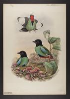 Colored litho print. Developed from Gould items 1178 and 2029; entirely different design from Birds of Asia V: 76. Not listed in the contents of the two parts of Pittidae. Artist's name(s): Hart, William Matthew.