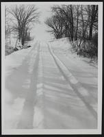 Weather - snowfall (a) Jimmy Sumneo and Gary Adams. (b) View about five miles west of Lawrence (c) Lane at Charles Topping farm. (d) scene of us 40 west of Lawrence. (e) Raymond ice farm west of Lawrence.