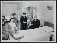 Memorial Hospital at Winchester (L to R) Mrs. Robert Taylor; Mrs. C. E. Olds; Mrs. Ed Walker; Mrs. Edith Braden; W. W. Mitchell.