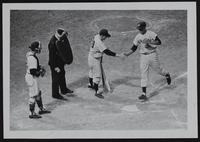 KC Baseball - (L to R) (A's catcher) Bill Shantz; unidentified umpire; Charlie Silverra; Elston Howard.