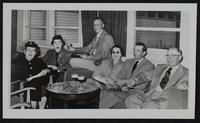 Douglas County - Ranchers at Ireland Airport. (L to R) Mrs. Fred McLeod; Mrs. Harold Lukens; Mr. and Mrs. O. R. Shultz; Harold Lukens; Fred McLeod.
