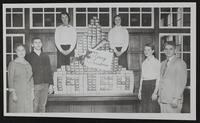 Junior High and Red Cross Christmas gift boxes. (L to R) Margaret Black, Jerry Schofer, Cynthia Parker, Jane Dunlap, Jane Dicker, Earle Westgate.