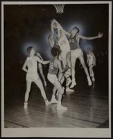 Haskell basketball - vs Salina Sacred Heart (L to R) Charles Rogers (15); Ken Bailey (12); Elliott Ryal (22); Jerry Brungardt (45); Willie Sevier (20)
