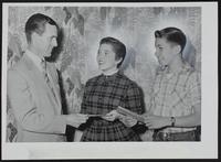 LJr [Lawrence Junior?]. H. and Smile contest - Mayor John Crown; Barbara Dunlap; Jimmie Scofield.