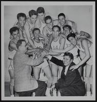 Haskell basketball - Ready for the finals of state class A - (L to R) Coaches Tony Coffin and Assistant Rupert Thompson. Front row - Ken Bailey; Wayne Jimboy; Walter Postoak; Tom Sugar; Cecil Jefferson; Back row - Wayne Postoak; Eugene Black; Bob McCosar; Elliott Ryal; Willie Sevier.