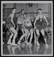LJH Basketball - vs. Leavenworth (L to R) Grablem (55); Larry Flannery; Doug Koehler; Justin Rice (4); Barker (6).