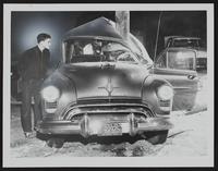 Auto Wrecks - (Probably) Carl Swain Anderson lifted to stretcher - patrolman Earl Harris at Left.