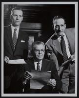 L Junior Chamber of Comm. honored (L to R) John Crown, mayor, distinguished service; Clarence Houk, owner of Carl's Clothing, boss of the year; Harold Deuser, key-man award.