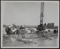 Kansas Turnpike - Crane is damaged on roadway in Kaw river north of Lawrence.