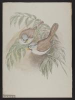 Drawing depicting: Paradoxornis gularis -- Grey-headed Parrotbill [Grey-crowned paradoxornis]