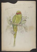 Drawing depicting: Psittacula longicauda nicobarica -- Long-tailed Parakeet. Alternate name on piece: Palaeornis nicobaricus [Nicobar parrakeet]