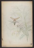 Drawing depicting: Chalcostigma heteropogon -- Bronze-tailed Thornbill. Alternate name on piece: Ramphomicron heteropogon