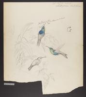 Drawing depicting: Thalurania furcata -- Fork-tailed Woodnymph. Alternate name on piece: Thalurania venusta