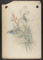 Drawing depicting: Eriocnemis glaucopoides -- Blue-capped Puffleg. Alternate name on piece: Eriocnemis cupreiventris
