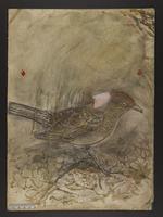 Drawing depicting: Chlamydera guttata guttata -- Western Bowerbird. Alternate name on piece: Chlamydera. Occipitalis [Large-frilled bower-bird]
