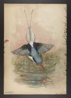 Drawing depicting: Tanysiptera galatea -- Galatea Paradise Kingfisher. Alternate name on piece: Tanysiptera microrhyncha [Fort-moresby racket-tailed kingfisher]