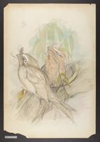 Drawing depicting: Podargus ocellatus -- Marbled Frogmouth. Alternate name on piece: Podargus marmoratus [Marbled podargus]