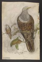 Drawing depicting: Cryptophaps poecilorrhoa -- Sombre Pigeon. Alternate name on piece: Gymnophaps poecilorrhoa [Rusty-banded fruit-pigeon]