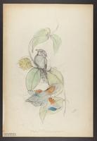 Drawing depicting: Serilophus lunatus rubropygius -- Silver-breasted Broadbill. Alternate name on piece: Serilophus rubripygius [Red-backed eurylaime]
