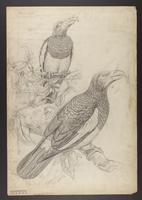 Drawing depicting: Psittrichas fulgidus -- Pesquet's Parrot. Alternate name on piece: Dasyptilus pesqueti