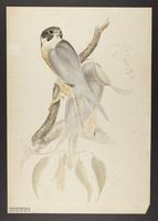 Drawing depicting: Falco longipennis -- Australian Hobby. Alternate name on piece: Falco frontatus [White-fronted falcon]