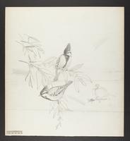 Drawing depicting: Parus xanthogenys -- Black-lored Tit. Alternate name on piece: Parus xanthogenys [Yellow-cheeked tit]