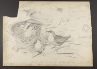 Drawing depicting: Cinclus cinclus -- White-throated Dipper. Alternate name on piece: Cinclus aquaticus [Water-ouzel, or dipper]