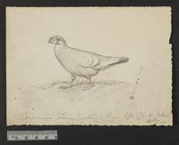 Drawing depicting: Tragopan temminckii -- Temminck's Tragopan. Alternate name on piece: Cerionis temmincki [Temminck's horned pheasant]