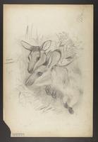 Drawing depicting: Macropus irma -- Western Brush Wallaby. Alternate name on piece: Halmaturus manicatus [Black-gloved wallaby]