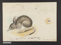 Drawing depicting: Chaeropus ecaudatus -- Pig-footed Bandicoot. Alternate name on piece: Choeropus castanotis [Chestnut-eared choeropus]