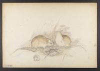 Drawing depicting: Trichosurus vulpecula -- Common Brushtail. Alternate name on piece: Mus cervinipes [Rufous-necked wallaby]