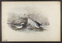 Drawing depicting: Motacilla alba -- White Wagtail; Lavandera blanca. Alternate name on piece: Motacilla yarrelli [Pied wagtail]