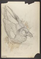Drawing depicting: Corvus corax -- Common Raven; Northern Raven, Cuervo comĂșn, grand corbeau, [Raven]