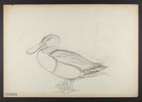 Drawing depicting: Anas clypeata -- Northern Shoveler; canard souchet, Pato cucharón-norteño. Alternate name on piece: Spatula clypeata [Shoveller duck]