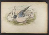 Drawing depicting: Larus minutus -- Little Gull; Gaviota mínima, mouette pygmée. Alternate name on piece: Hydrocoloeus minutus [Little gull]
