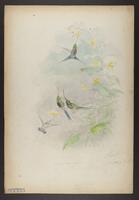 Drawing depicting: Discosura popelairii -- Wire-crested Thorntail. Alternate name on piece: Gouldia popelairi