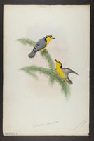 Drawing depicting: Pachycare flavogrisea -- Golden-faced Pachycare. Alternate name on piece: Pachycare flavo-grisea [Yellow-and-grey thickhead]