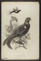 Drawing depicting: Lyrurus tetrix -- Black Grouse, Eurasian Black Grouse. Alternate name on piece: Tetrao mlokosiewiczi [Georgian black grouse]