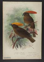 Drawing depicting: Amblyornis flavifrons & Amblyornis inornatus; Amblyornis inornatus