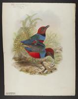 Drawing depicting: Pitta erythrogaster  caeruleitorques -- Red-bellied Pitta. Alternate name on piece: Pitta caeruleitorques [Red-headed pitta]