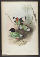 Drawing depicting: Pitta sordida -- Hooded Pitta. Alternate name on piece: Pitta atricapilla [Black-headed pitta]