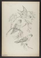 Drawing depicting: Psittaculirostris desmarestii -- Flame-headed Fig Parrot. Alternate name on piece: Cyclopsitta cervicalis [Southern ringed perroquet]