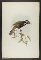 Drawing depicting: Melidectes leucostephes -- White-capped Honeyeater. Alternate name on piece: Melirrhophetes leucostephes [White-faced honey-eater]