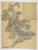Drawing depicting: Pachycephalopsis hattamensis -- Green-backed Robin. Alternate name on piece: Pachycephalopsis hattamensis [Pachycephla hattamensis on plate] [Hattam thickhead]