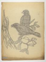 Drawing depicting: Scenopoeetes dentirostris -- Tooth-billed Bowerbird. Alternate name on piece: Scenopaeus dentirostris [Toothed-billed bower-bird]