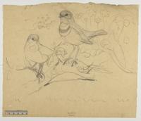 Drawing depicting: Luscinia svecica -- Bluethroat; Bluethroats. Alternate name on piece: Cyanecula suecica [Red-throated bluebreast]